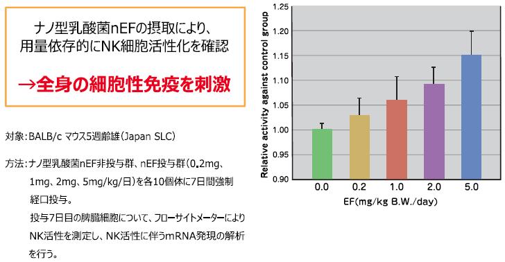 ナノ型乳酸菌nEFの摂取により、用量依存的なNK細胞の活性を確認しました。