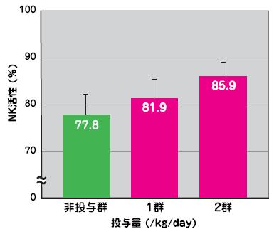 健常マウスに植物性ナノ型乳酸菌SNKを投与し、NK細胞活性をみたところ、濃度依存的にゆるやかなNK細胞の向上を示しました。
