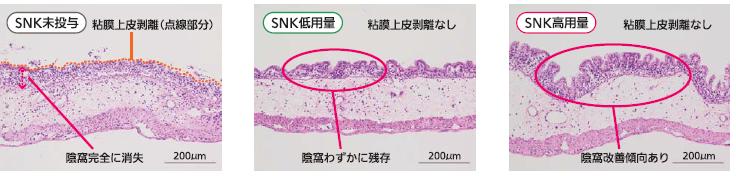 植物性ナノ型乳酸菌SNKの用量依存的にデキストラン硫酸ナトリウム誘導大腸炎による腸管免疫組織のダメージが軽減されたことが確認できました。