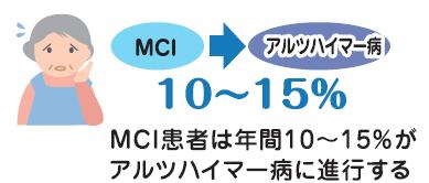 さらに、認知症予備群状態とされる「MCI」患者の10~15%が毎年アルツハイマー病に進行することがわかっています。