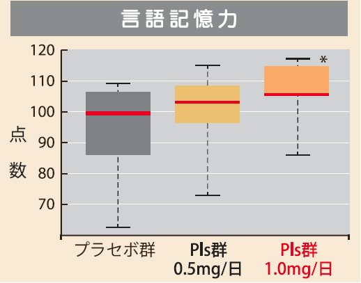 | ※MMSE | 30点満点で27点以上で健常者と弁別される認知機能検査試験デザイン:無作為化二重盲検プラセボ対照並行群間試験 |